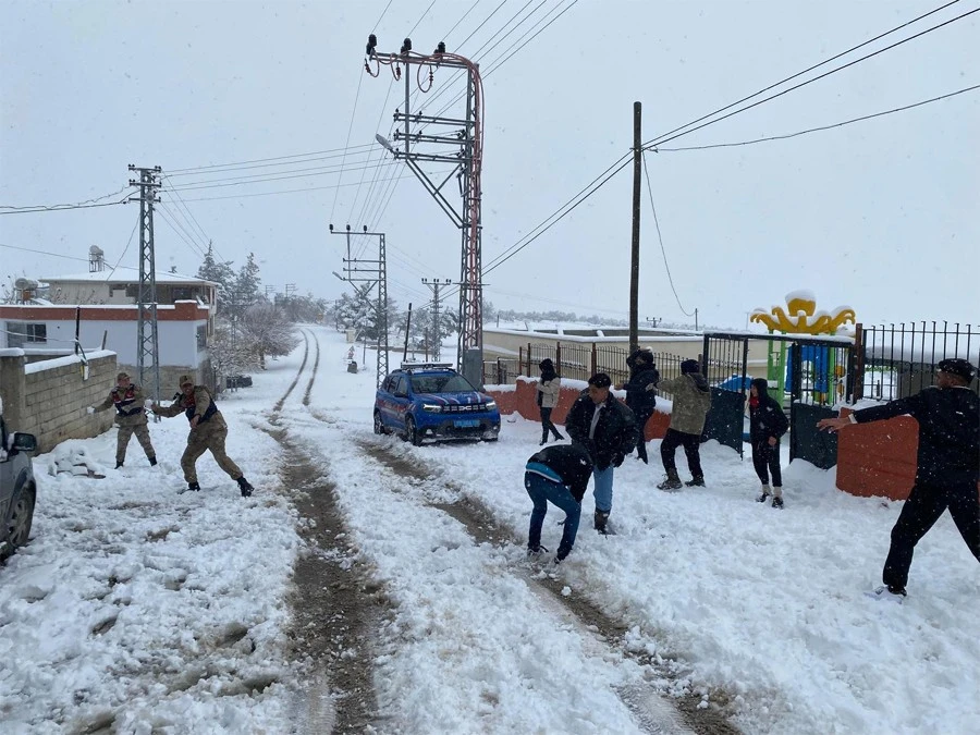 Öte yandan karın sevincini yaşayan çocukları da unutmayan jandarma ekipleri, çocuklarla birlikte kar topu oynayarak güzel anlara ortak oldu.