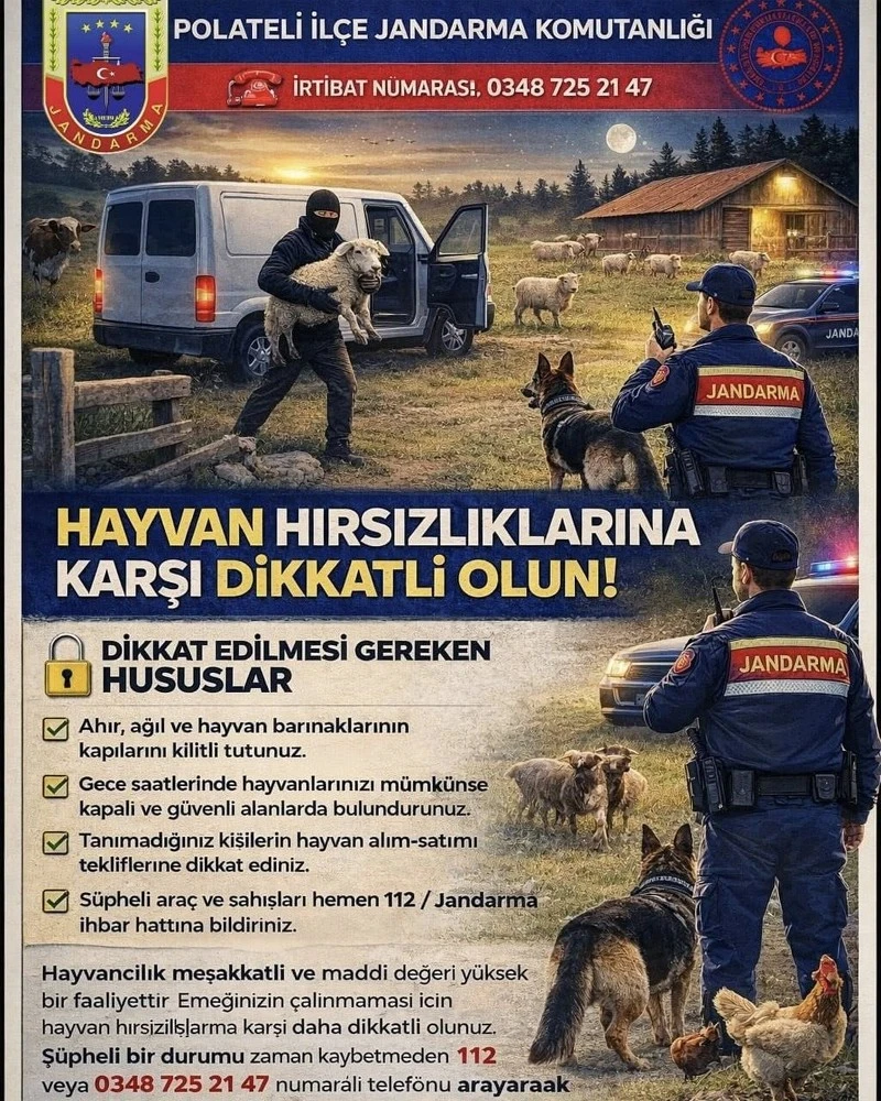Polateli İlçe Jandarma Komutanlığı ekipleri, özellikle hayvan hırsızlığı ve dolandırıcılık olaylarının önüne geçmek için kapsamlı bilgilendirme ve denetim faaliyetleri yürüttü.
