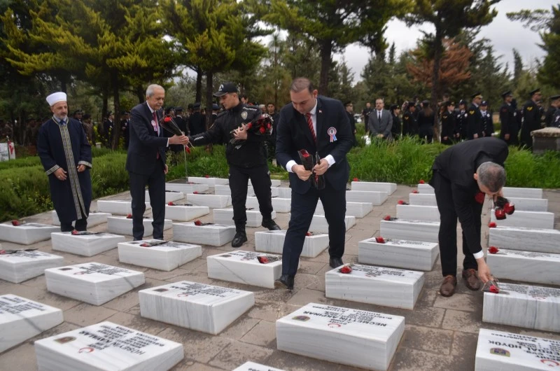 Şehitlikte düzenlenen törende, anıta çelenk sunulmasının ardından saygı duruşunda bulunuldu ve İstiklal Marşı okundu. Tören, şehit kabirlerine karanfiller bırakılmasıyla devam etti. Duygusal anların yaşandığı programda, katılımcılar şehitlerin hatıraları önünde saygıyla eğildi.