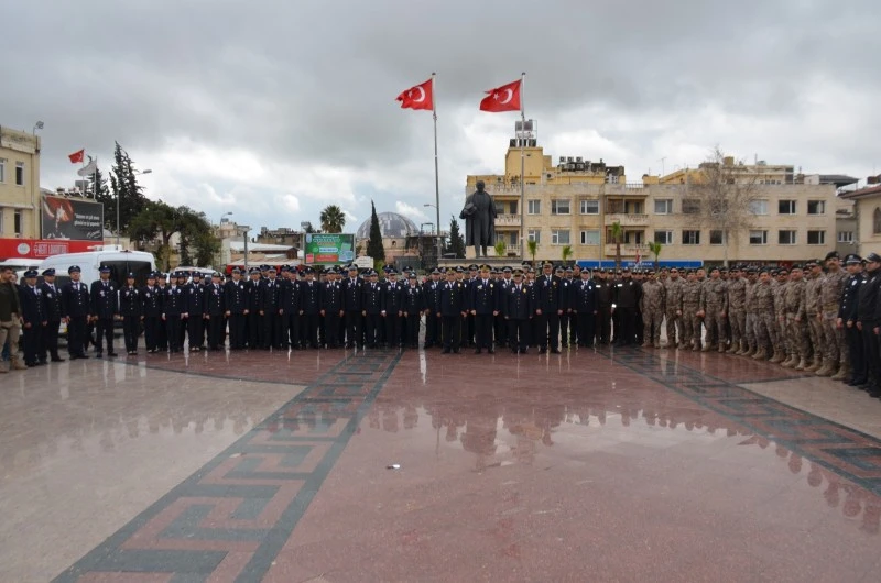 Şehitlikteki programın ardından kutlamalar Kilis Cumhuriyet Meydanı’nda devam etti. Burada Atatürk Anıtı’na çelenk sunulmasıyla başlayan törende, bir dakikalık saygı duruşu gerçekleştirildi ve İstiklal Marşı hep bir ağızdan okundu. Törene katılan protokol üyeleri ve vatandaşlar, meydanı doldurarak Polis Haftası’nın coşkusuna ortak oldu.