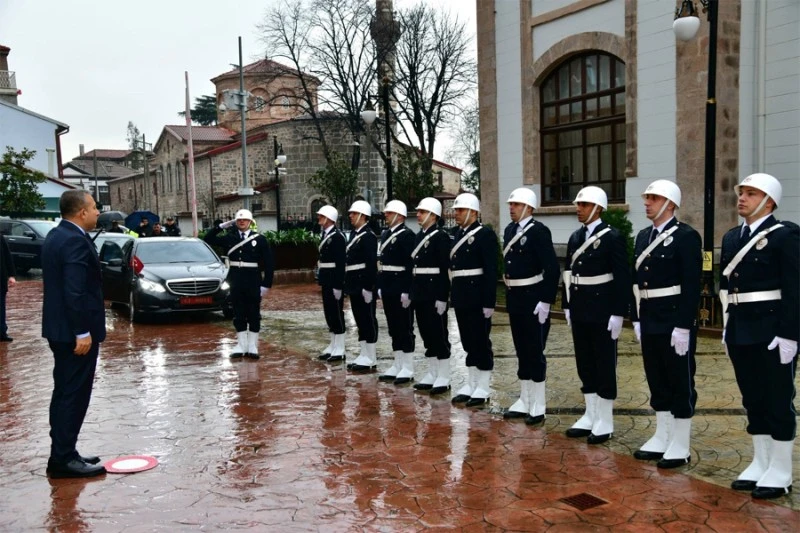 Vali Tahir Şahin; Trabzon Büyükşehir Belediye Başkanı Ahmet Metin Genç, Ortahisar Belediye Başkanı Ahmet Kaya, Vali Yardımcıları, Kaymakamlar ve kurum müdürleri tarafından Tarihi Valilik Binası’nda karşılandı.