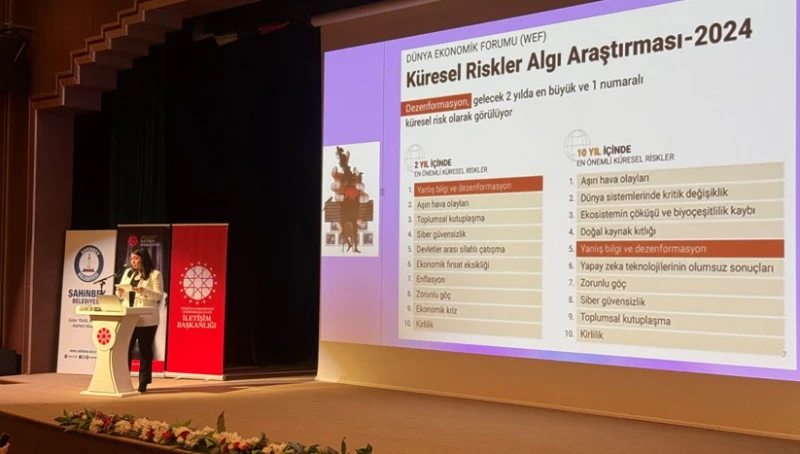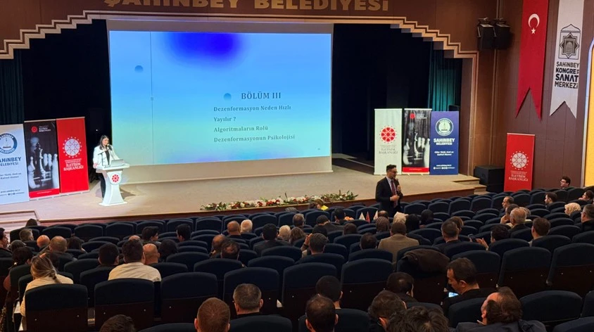 Demir’in konuşmasının ardından kürsüye gelen Şahinbey Belediye Başkanı Mehmet Tahmazoğlu, yerel yönetimlerin sahada doğrudan dezenformasyonla karşı karşıya kaldığını belirtti. Özellikle pandemi ve deprem gibi kriz dönemlerinde belediyelerin çok sayıda yanıltıcı bilgiyle mücadele etmek durumunda kaldığını ifade eden Tahmazoğlu, dezenformasyonun yalnızca bilgi kirliliği değil, aynı zamanda toplumsal ve etik açıdan da ciddi sonuçlar doğuran bir sorun olduğuna vurgu yaptı.