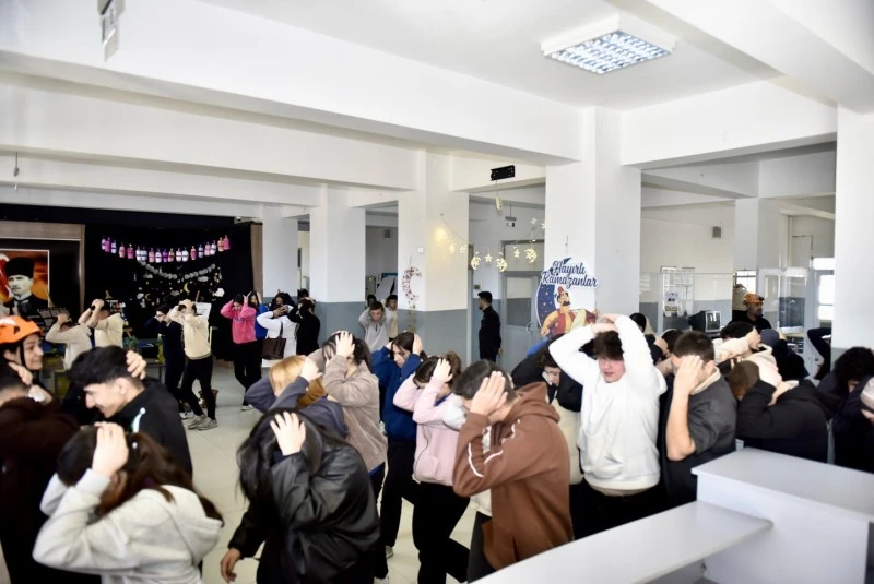 Kilis İl Afet ve Acil Durum Müdürlüğü tarafından düzenlenen etkinlik çerçevesinde Kilis Türkiye Odalar ve Borsalar Birliği 15 Temmuz Şehitleri Anadolu Lisesi'nde deprem tatbikatı yapıldı.