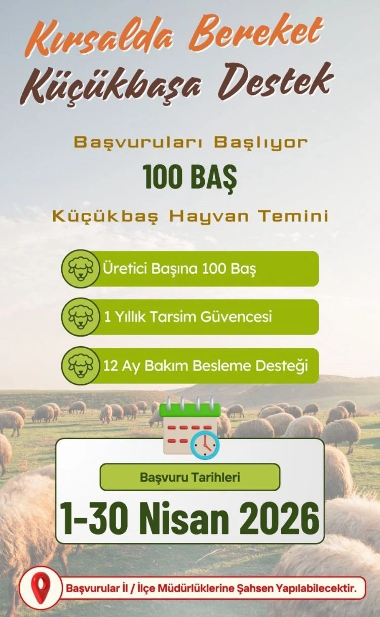 Başvurular 1-30 Nisan 2026 tarihleri arasında alınacak. Programa katılmak isteyen yetiştiricilerin başvurularını il ve ilçe müdürlüklerine şahsen yapmaları gerekiyor.